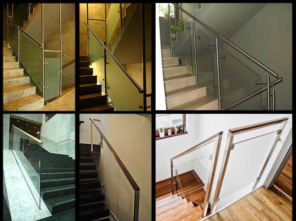 De gepresenteerde oplossingen zijn geheel van glas samen met een ander materiaal, zoals staal, aluminium of hout, voor leuning.