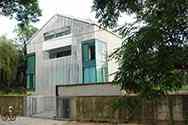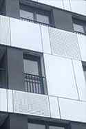 Naast geventileerde gevels bedekt met staalplaten en composietplaten we voeren de gevelbekleding uit met geperforeerde Corten staalplaten.